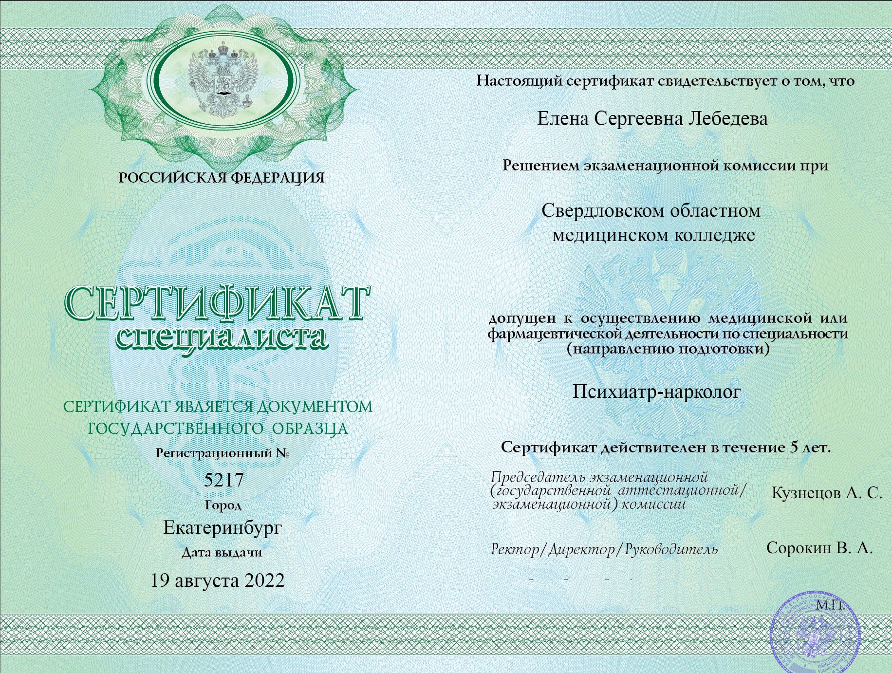 Елена Сергеевна Лебедева врач нарколог клиники доктора Стукаловой в Дагомысе